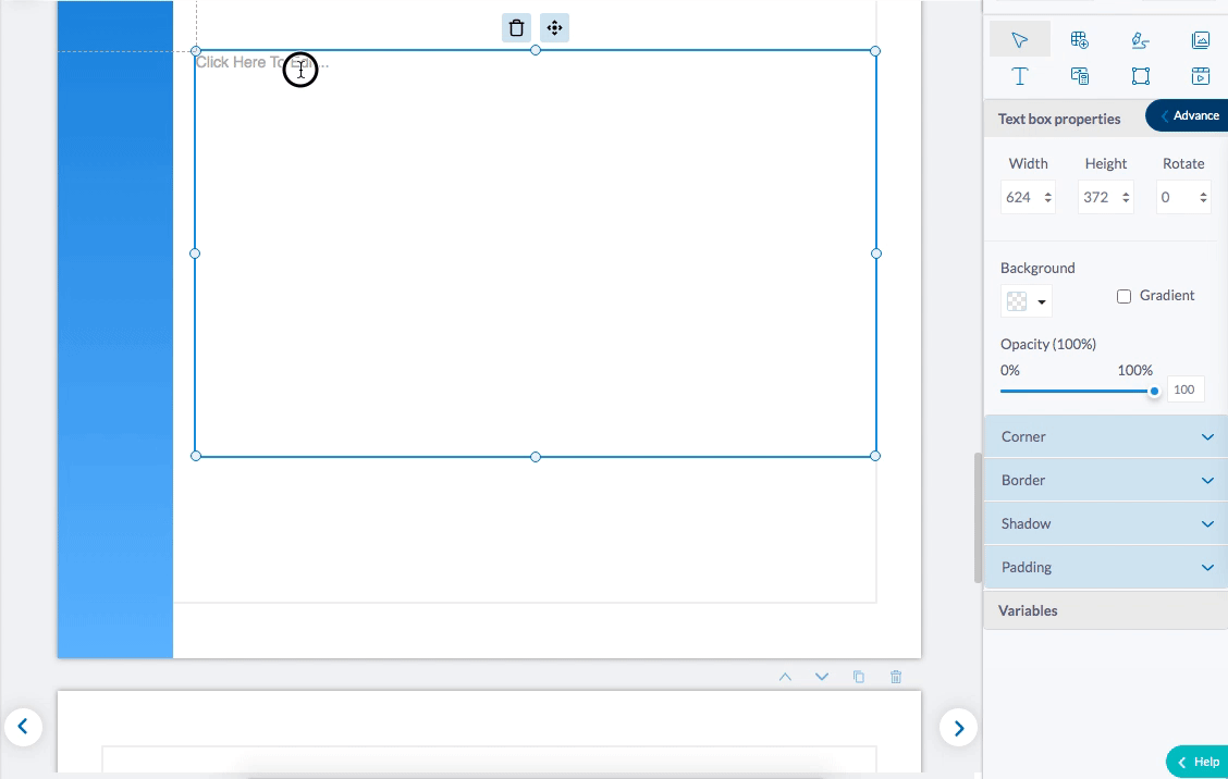 Look for a tab called Variable on right side panel. It also list same set of placeholder variables for you ( you can search it too). Click on the desired one and you will see it added to your active text block